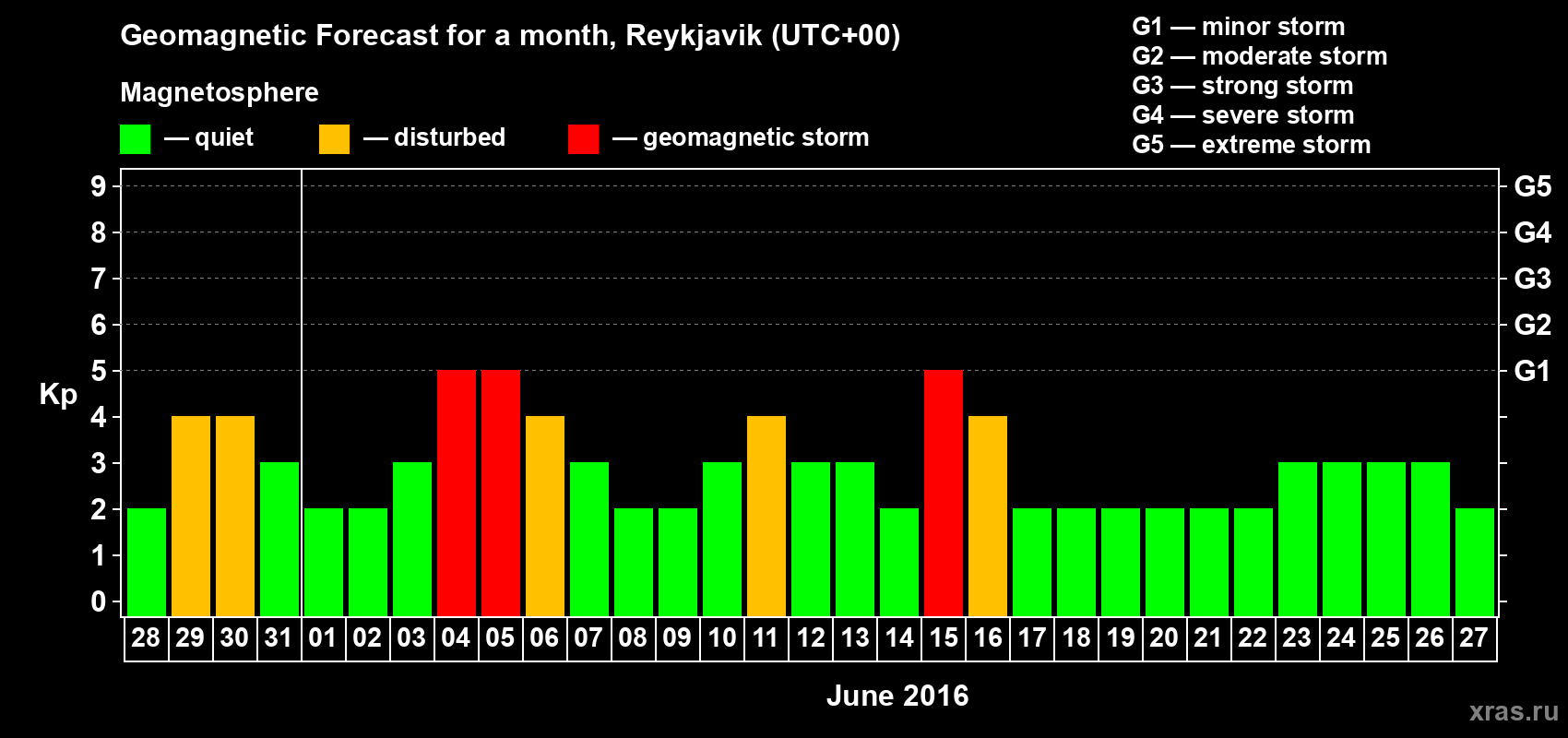 Geomagnetic storm forecast in Reykjavik for May 28, 2016