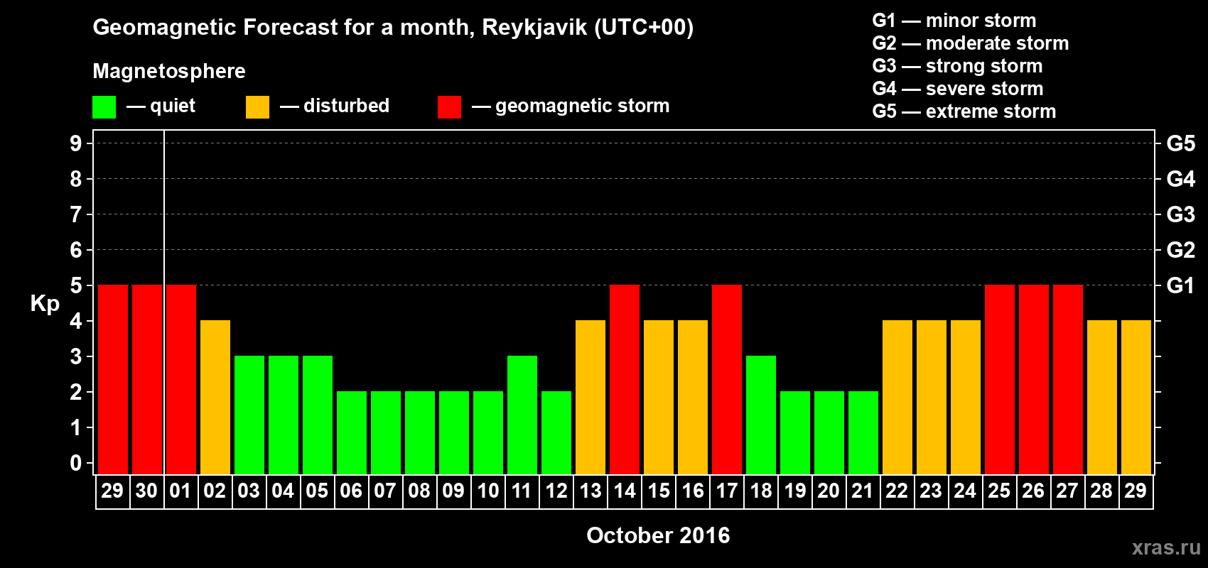Geomagnetic storm forecast in Reykjavik for Sep 29, 2016