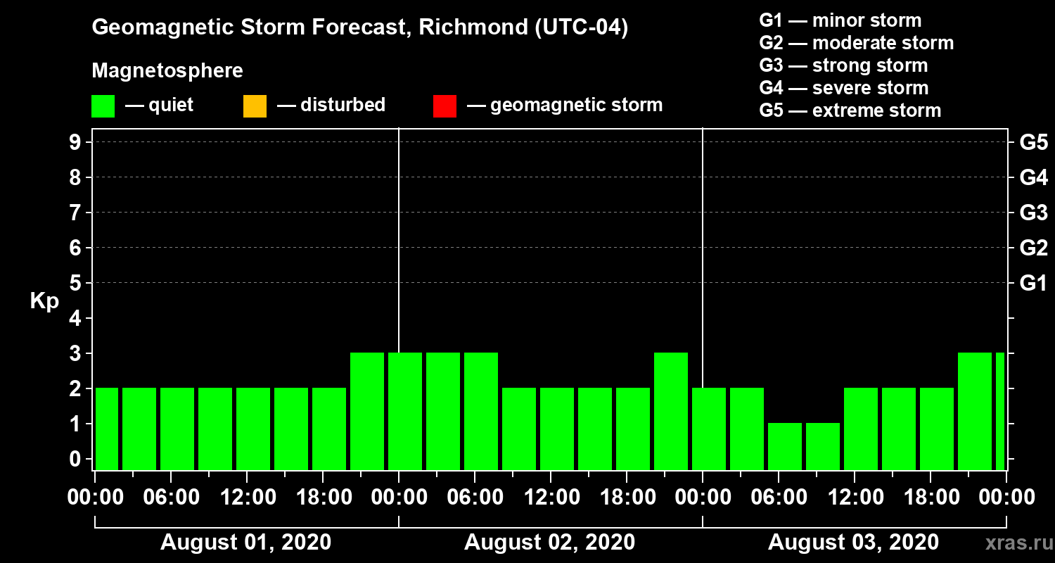 Geomagnetic storm forecast in Richmond for Aug 01, 2020