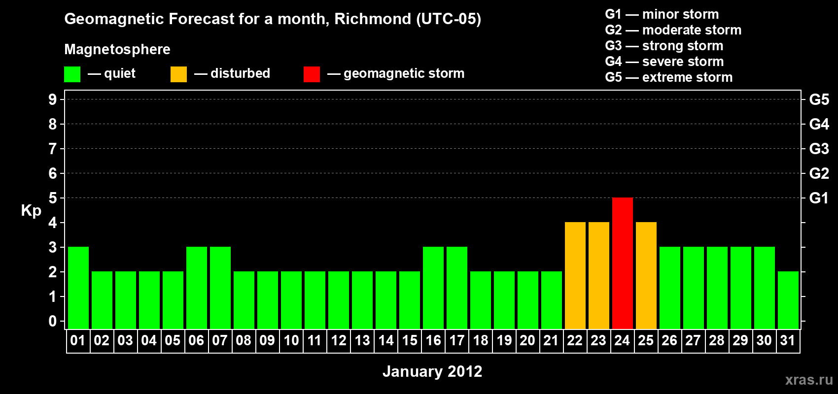 Geomagnetic storm forecast in Richmond for Jan 01, 2012