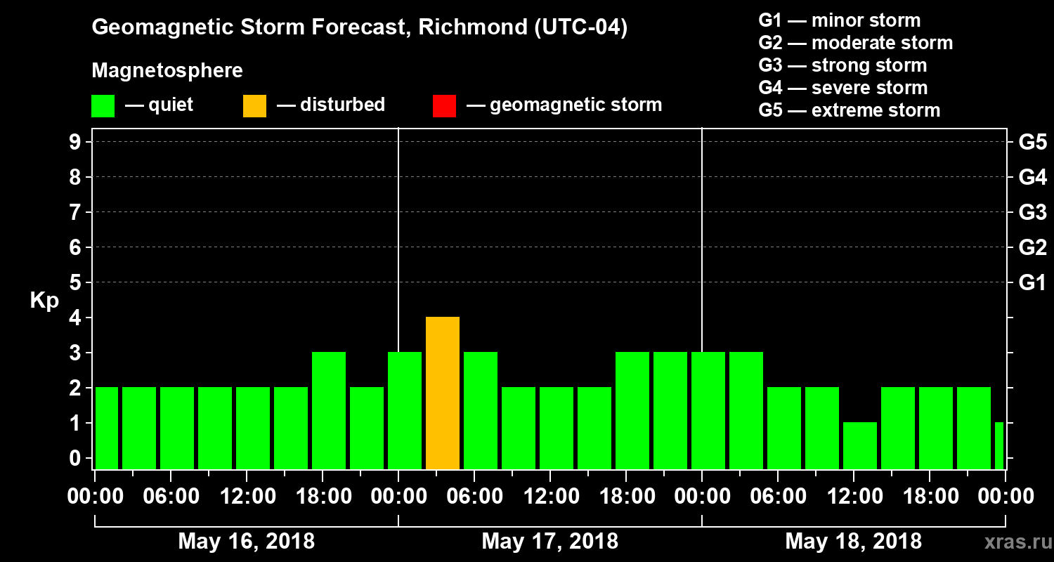Geomagnetic storm forecast in Richmond for May 16, 2018