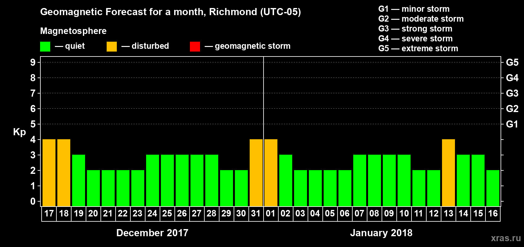 Geomagnetic storm forecast in Richmond for Dec 17, 2017