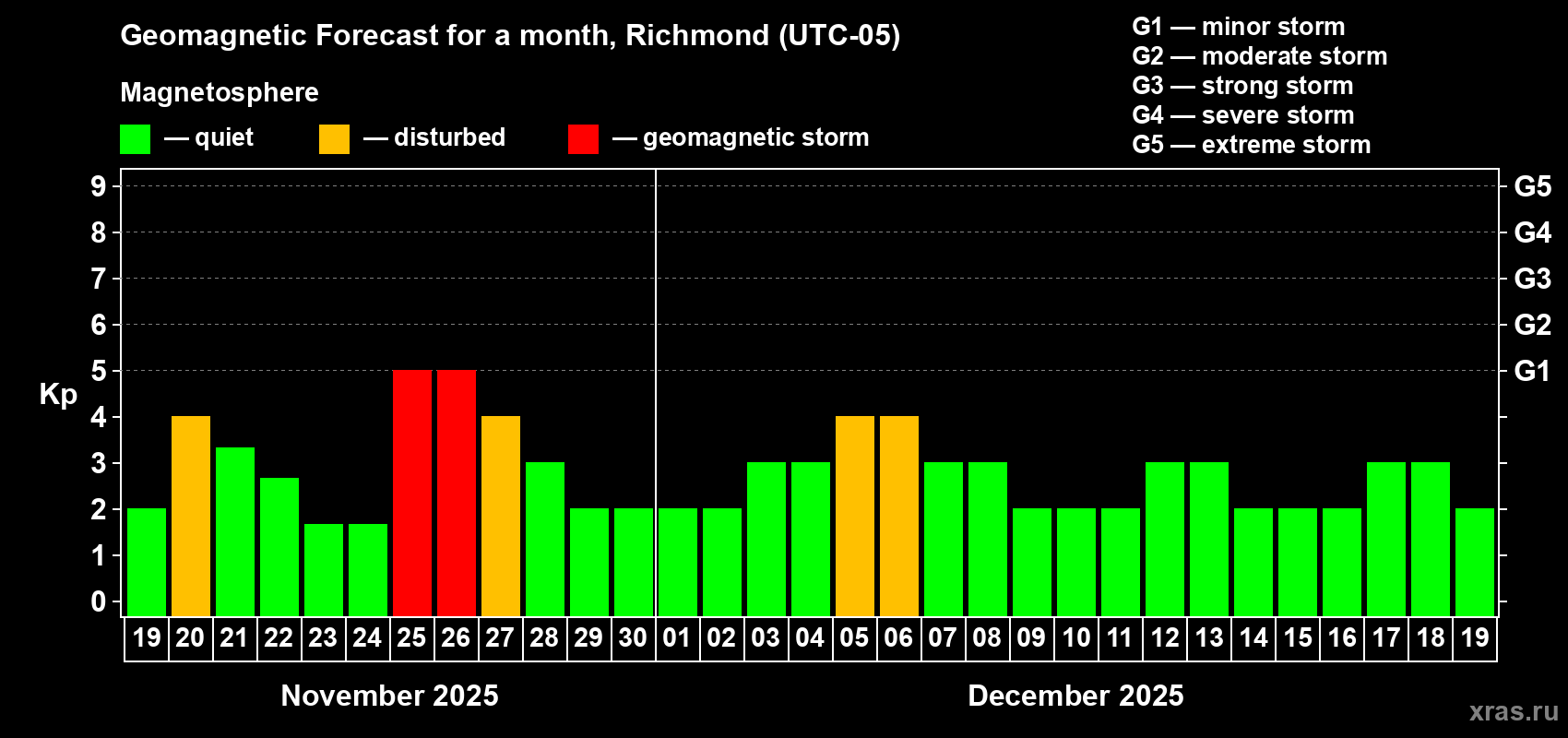 Geomagnetic storm forecast in Richmond for Nov 19, 2025