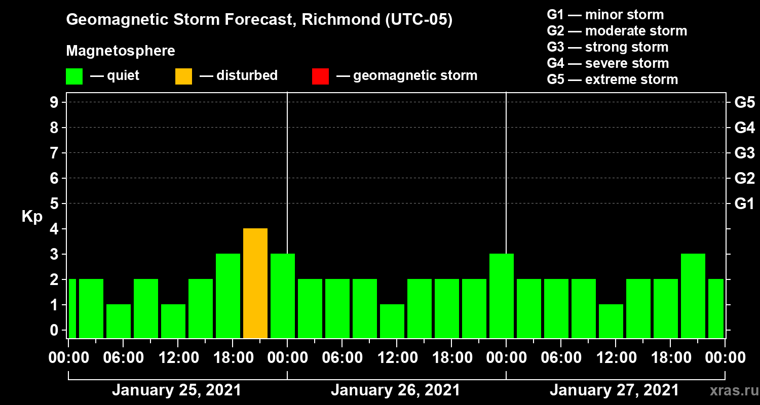 Geomagnetic storm forecast in Richmond for Jan 25, 2021