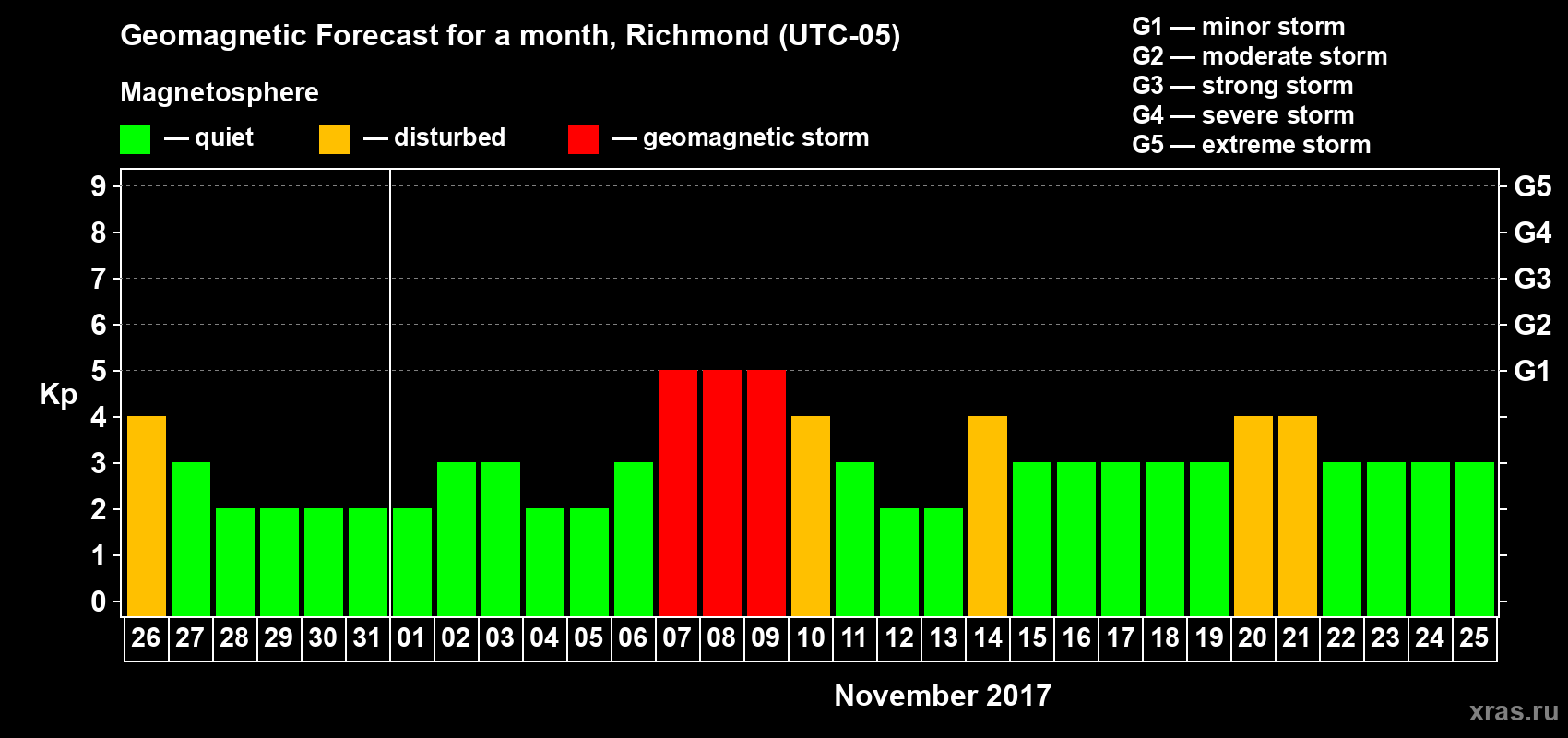 Geomagnetic storm forecast in Richmond for Oct 26, 2017