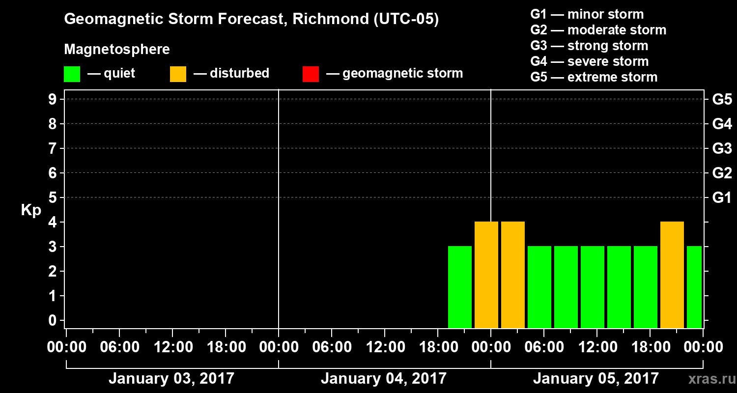Geomagnetic storm forecast in Richmond for Jan 03, 2017