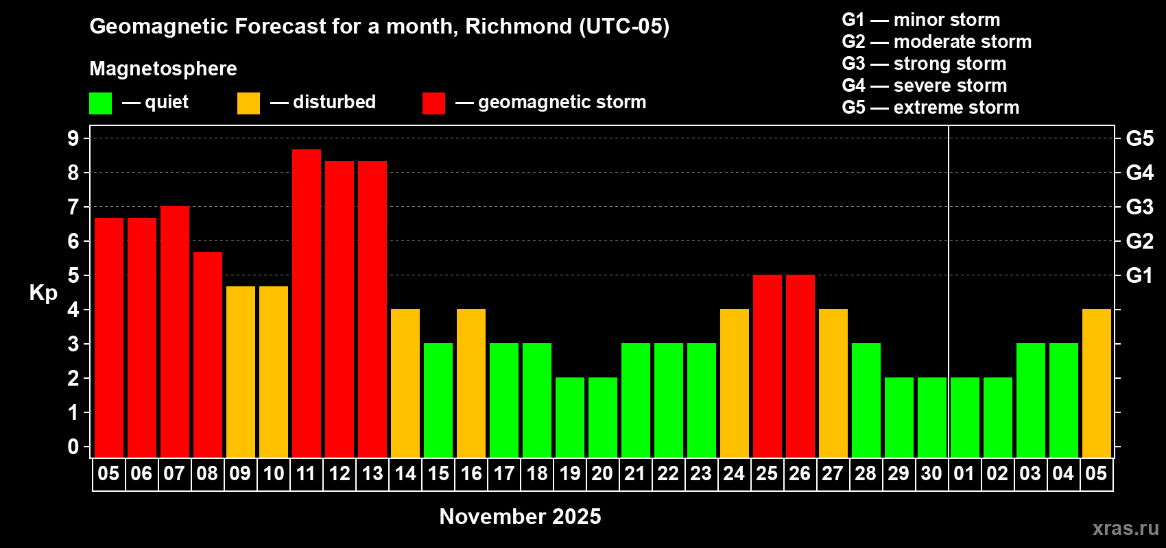Geomagnetic storm forecast in Richmond for Nov 05, 2025