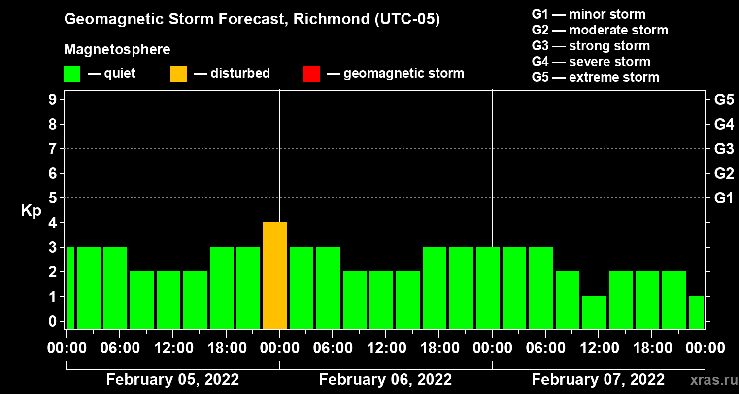 Geomagnetic storm forecast in Richmond for Feb 05, 2022