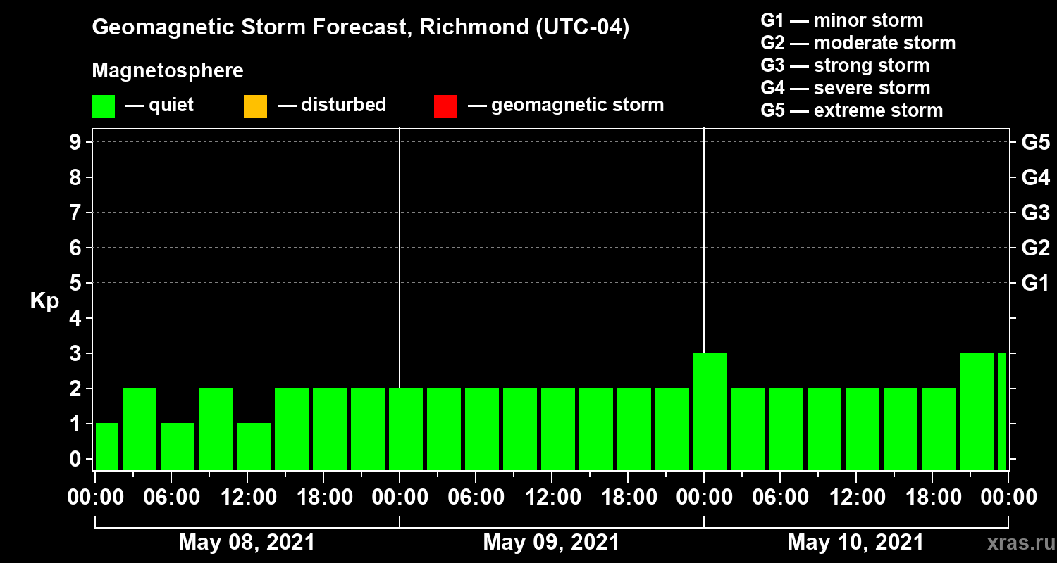 Geomagnetic storm forecast in Richmond for May 08, 2021