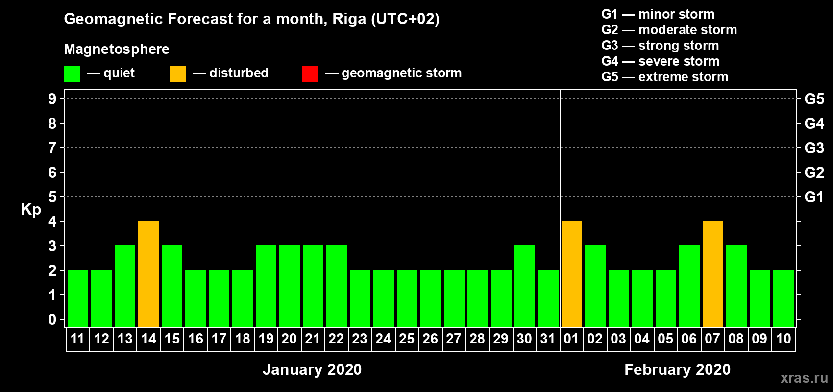 Geomagnetic storm forecast in Riga for Jan 11, 2020