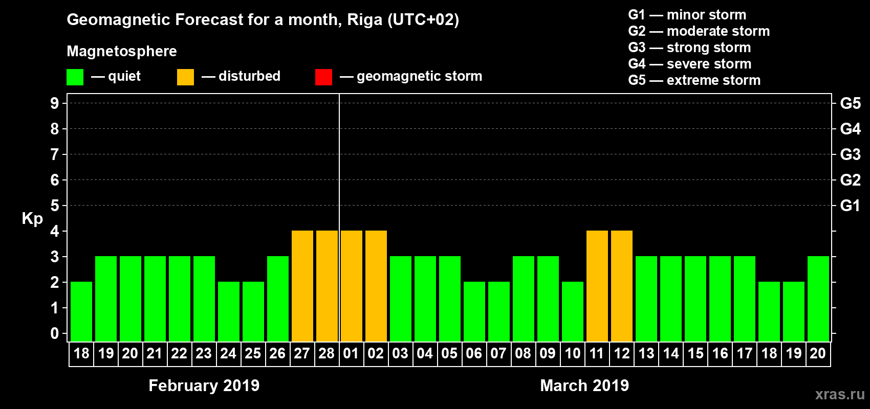 Geomagnetic storm forecast in Riga for Feb 18, 2019