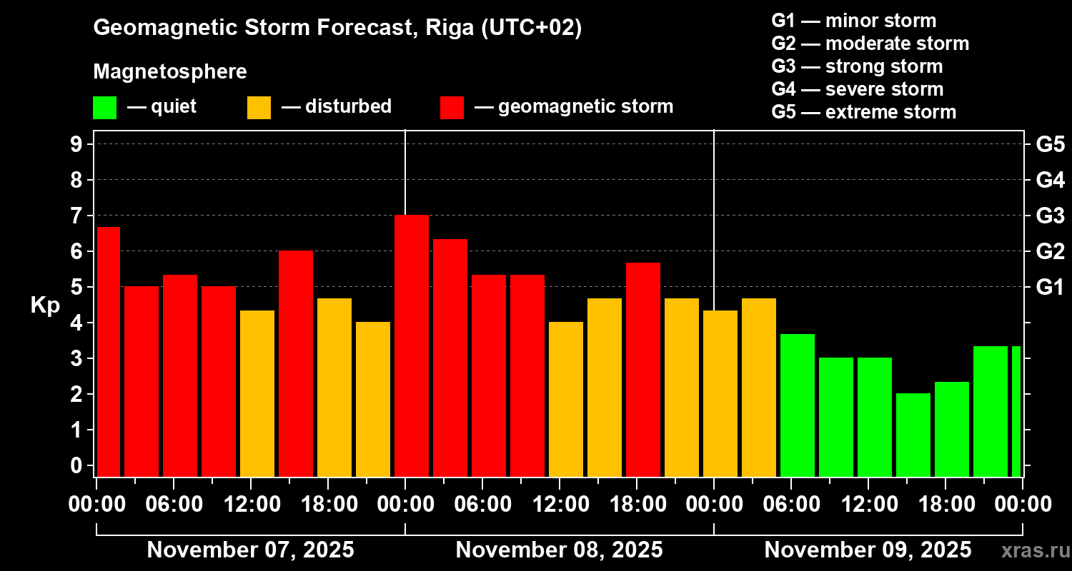 Geomagnetic storm forecast in Riga for Nov 07, 2025