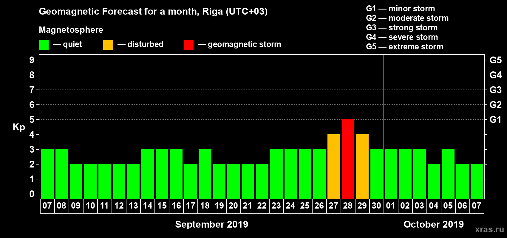 Geomagnetic storm forecast in Riga for Sep 07, 2019