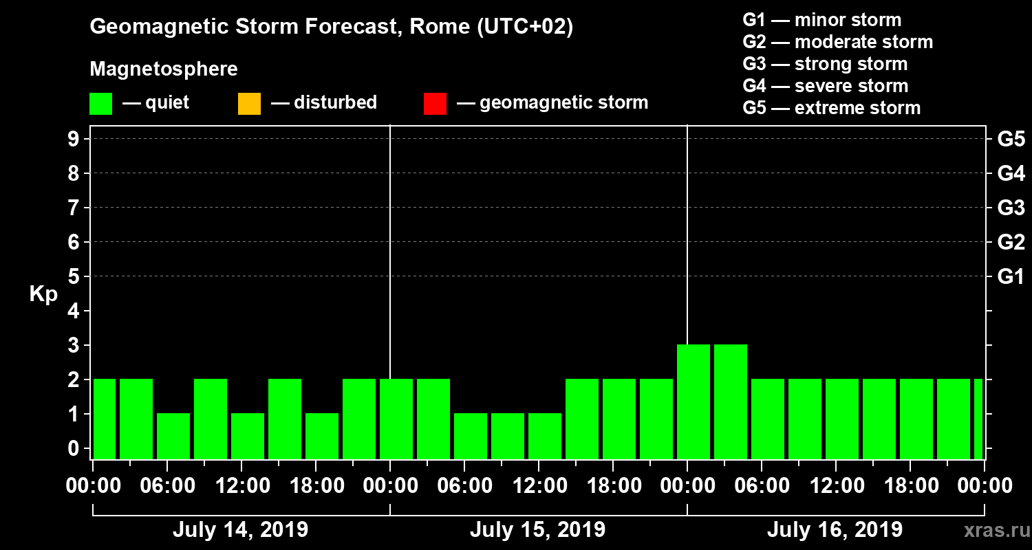 Geomagnetic storm forecast in Rome for Jul 14, 2019