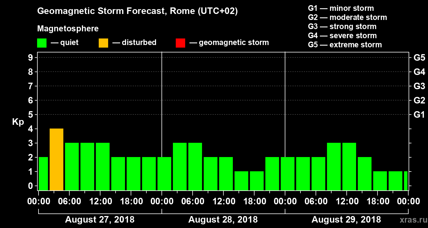 Geomagnetic storm forecast in Rome for Aug 27, 2018
