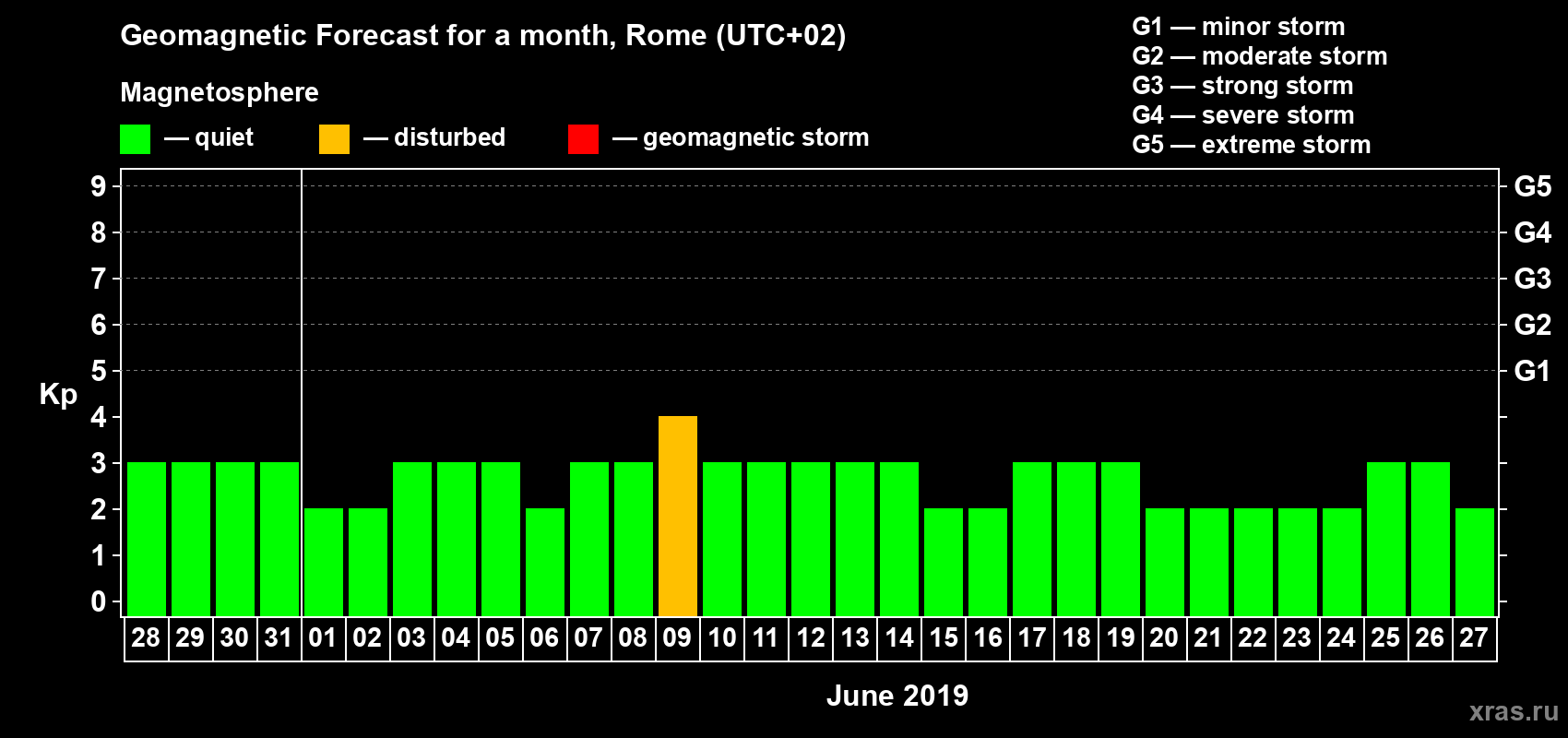 Geomagnetic storm forecast in Rome for May 28, 2019