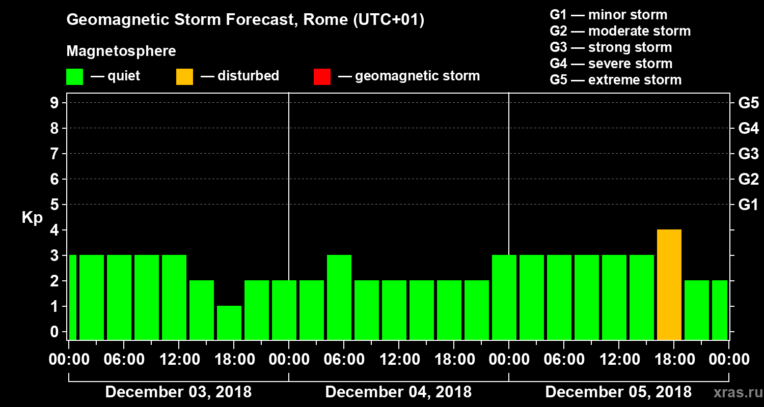 Geomagnetic storm forecast in Rome for Dec 03, 2018
