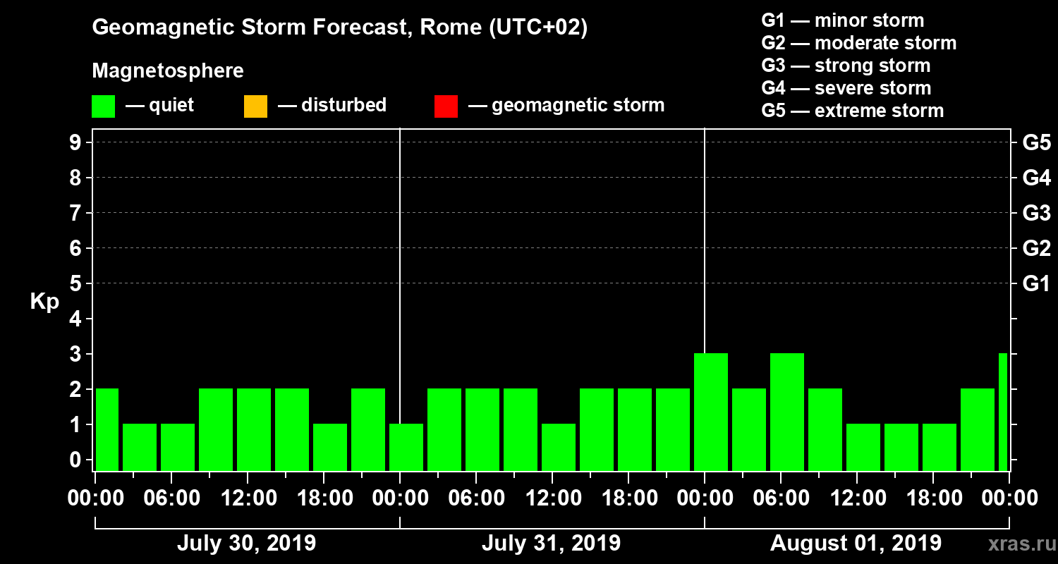 Geomagnetic storm forecast in Rome for Jul 30, 2019