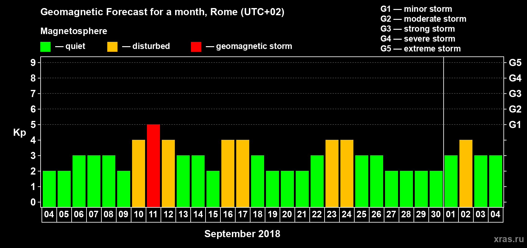 Geomagnetic storm forecast in Rome for Sep 04, 2018