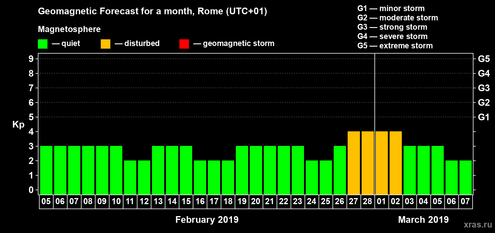 Geomagnetic storm forecast in Rome for Feb 05, 2019
