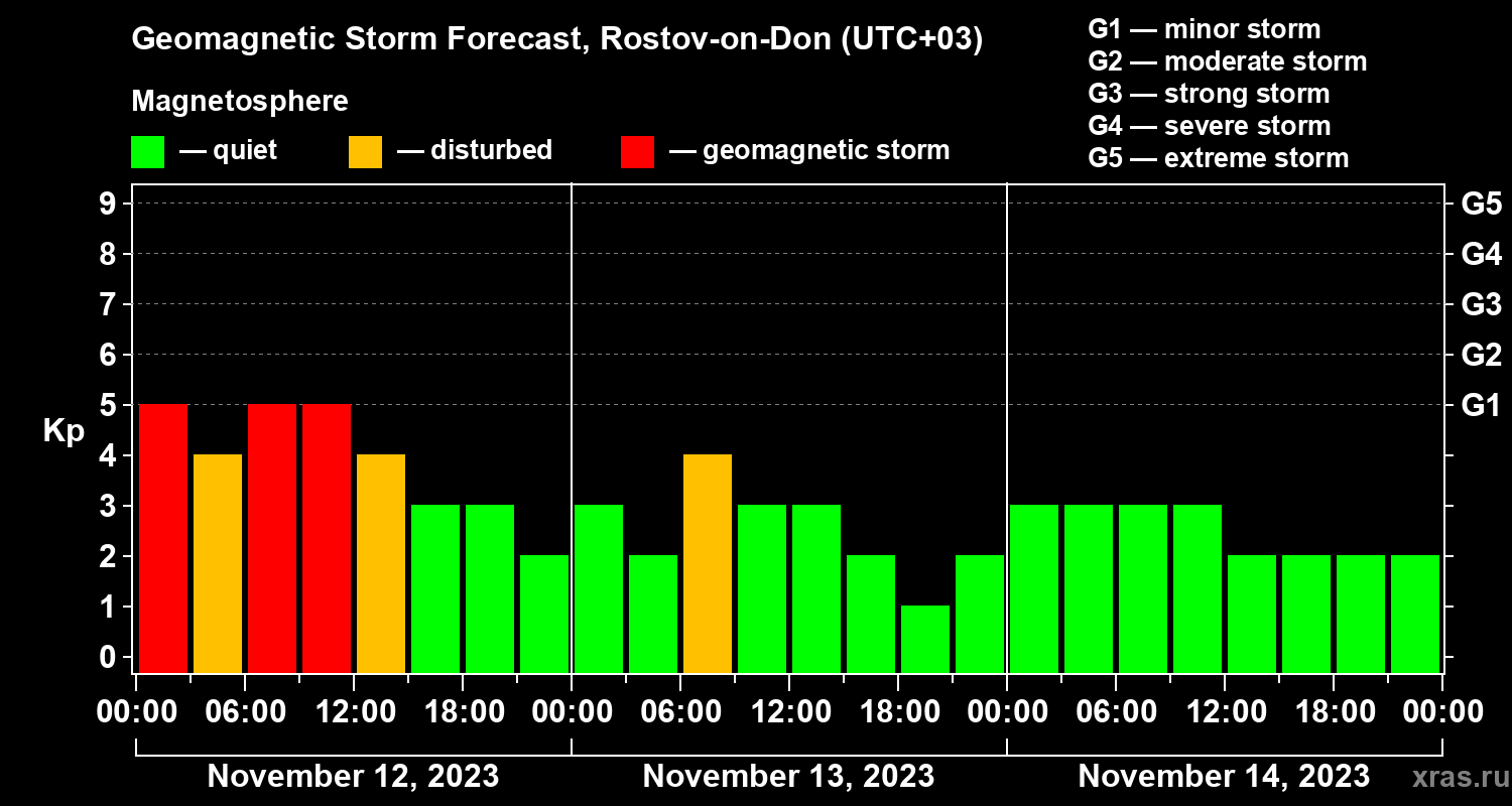 Geomagnetic activity forecast in Rostov-on-Don — Nov 12, 2023