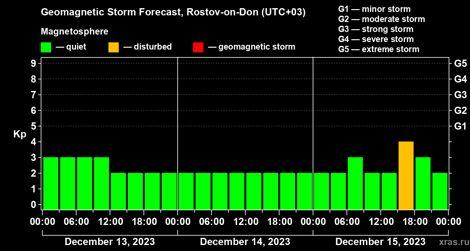 Geomagnetic storm forecast in Rostov-on-Don for Dec 13, 2023