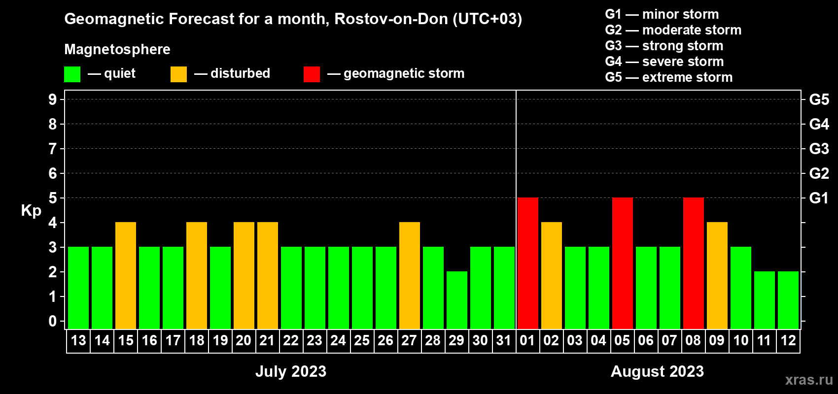 Geomagnetic storm forecast in Rostov-on-Don for Jul 13, 2023