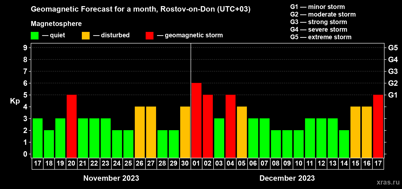 Geomagnetic storm forecast in Rostov-on-Don for Nov 17, 2023