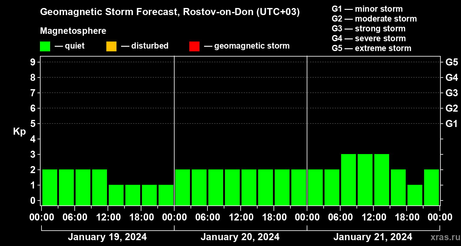 Geomagnetic storm forecast in Rostov-on-Don for Jan 19, 2024