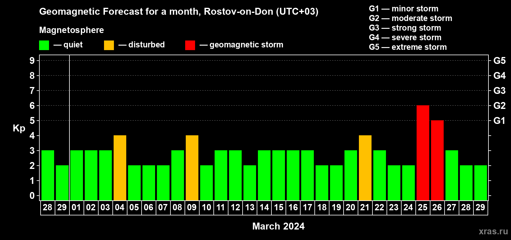 Geomagnetic storm forecast in Rostov-on-Don for Feb 28, 2024