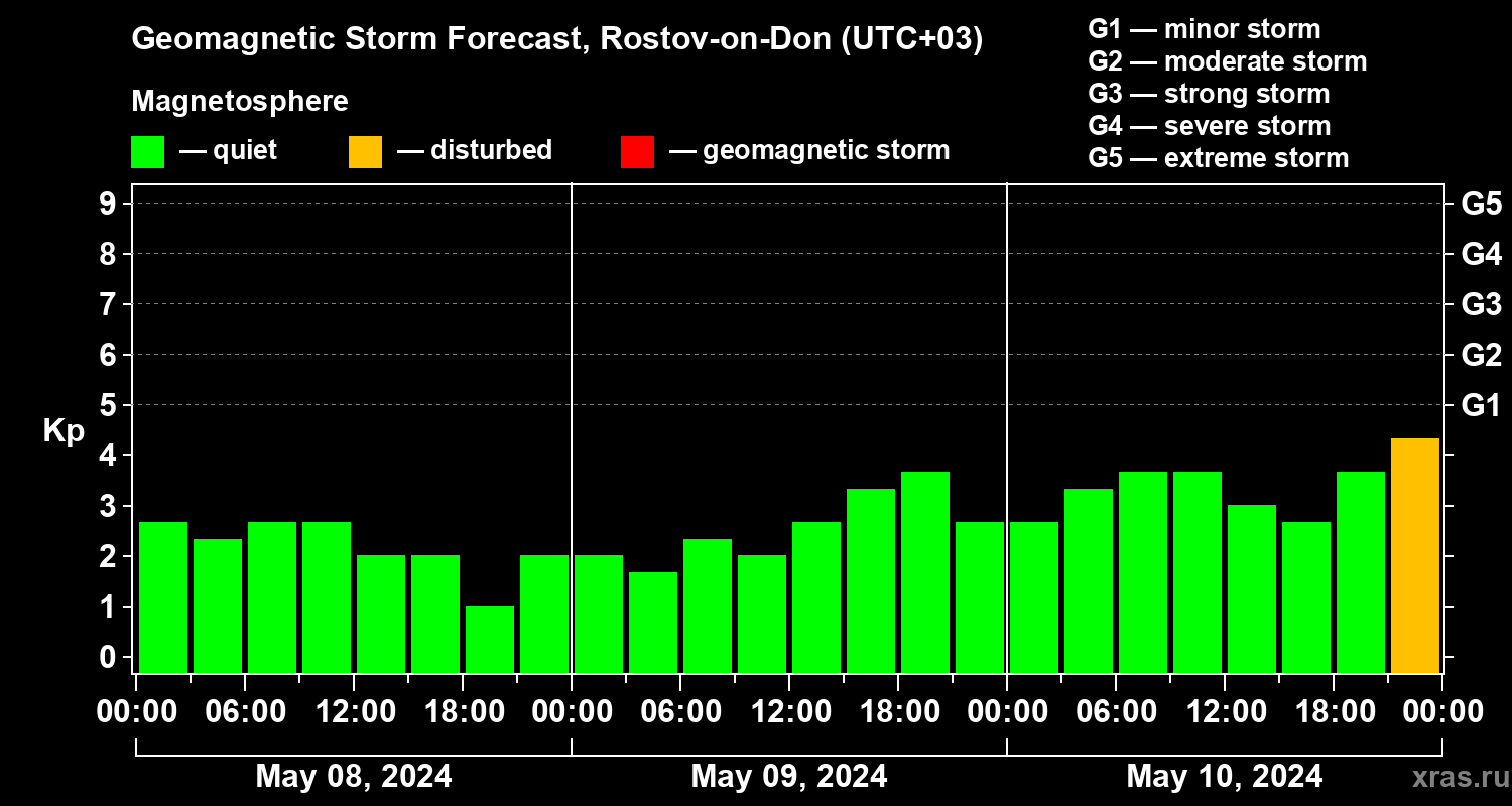 Geomagnetic activity forecast in Rostov-on-Don — May 08, 2024