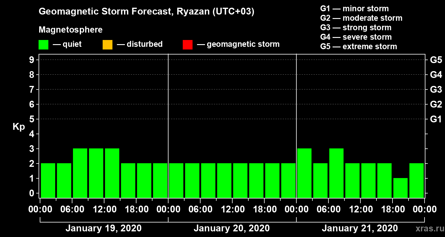 Geomagnetic activity forecast in Ryazan — Jan 19, 2020