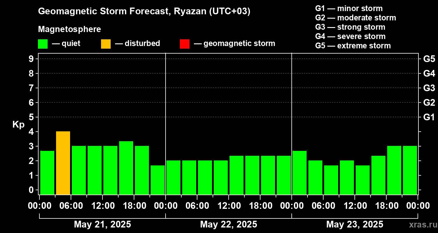 Geomagnetic storm forecast in Ryazan for May 21, 2025