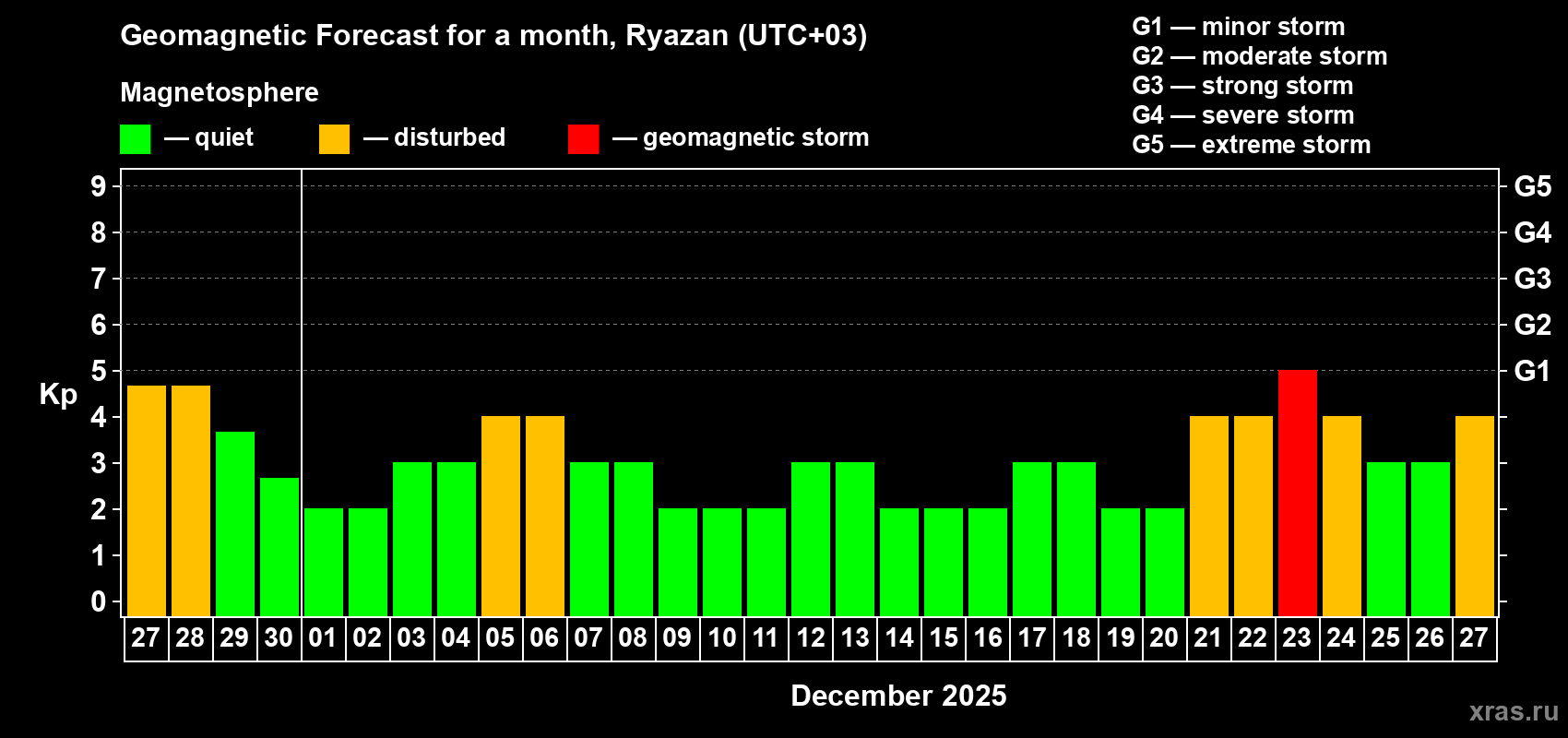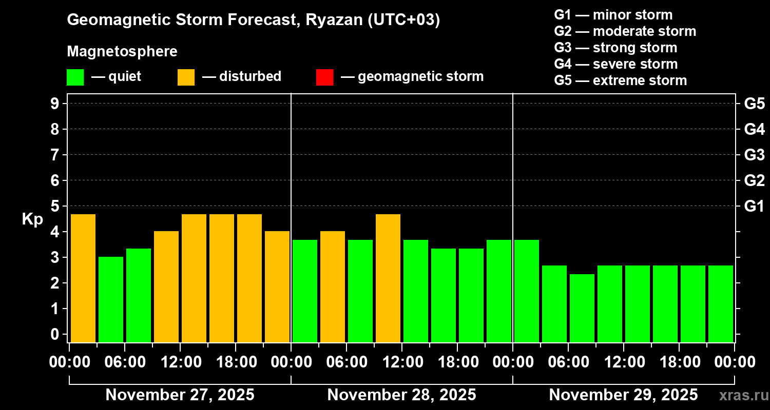 Geomagnetic storm forecast in Ryazan for Nov 27, 2025