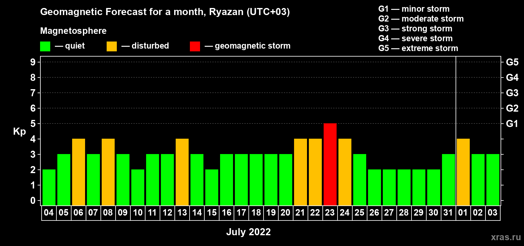 Geomagnetic storm forecast in Ryazan for Jul 04, 2022