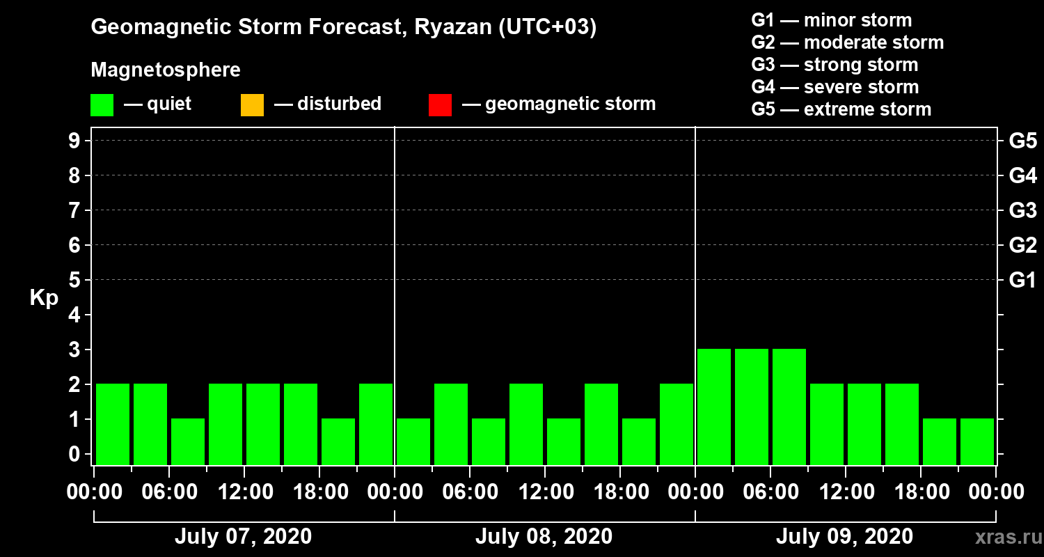 Geomagnetic storm forecast in Ryazan for Jul 07, 2020