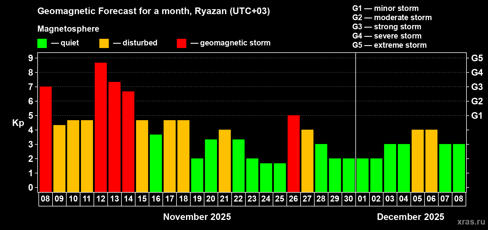 Geomagnetic storm forecast in Ryazan for Nov 08, 2025