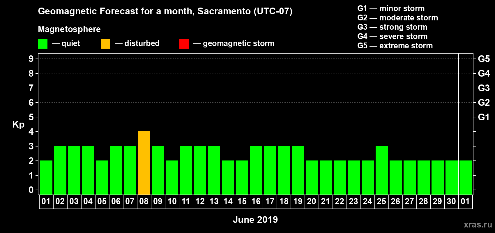 Geomagnetic storm forecast in Sacramento for Jun 01, 2019
