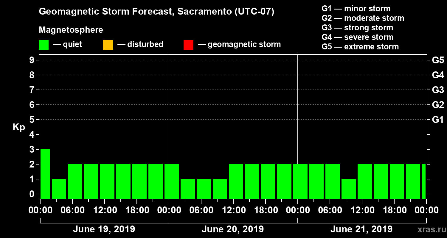 Geomagnetic storm forecast in Sacramento for Jun 19, 2019