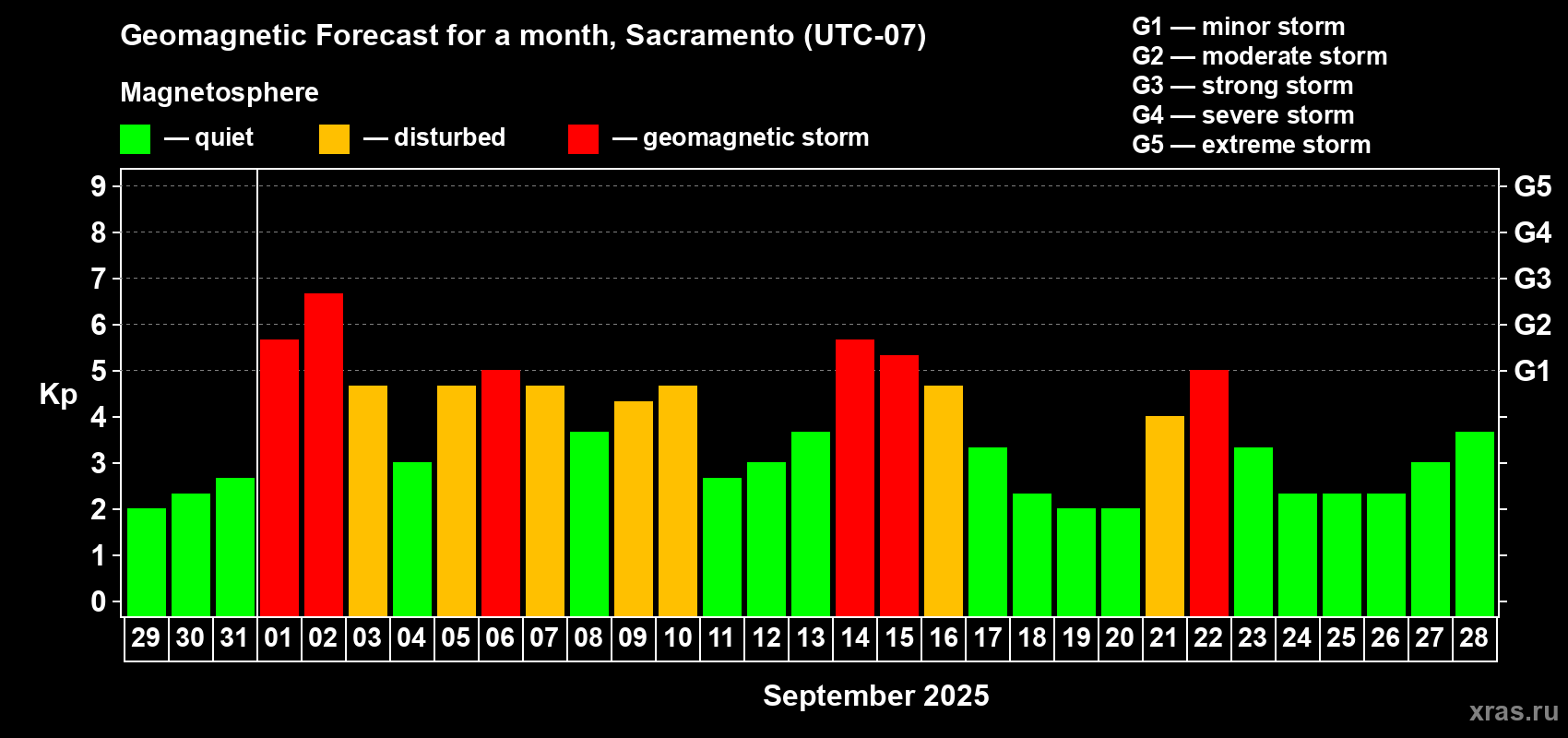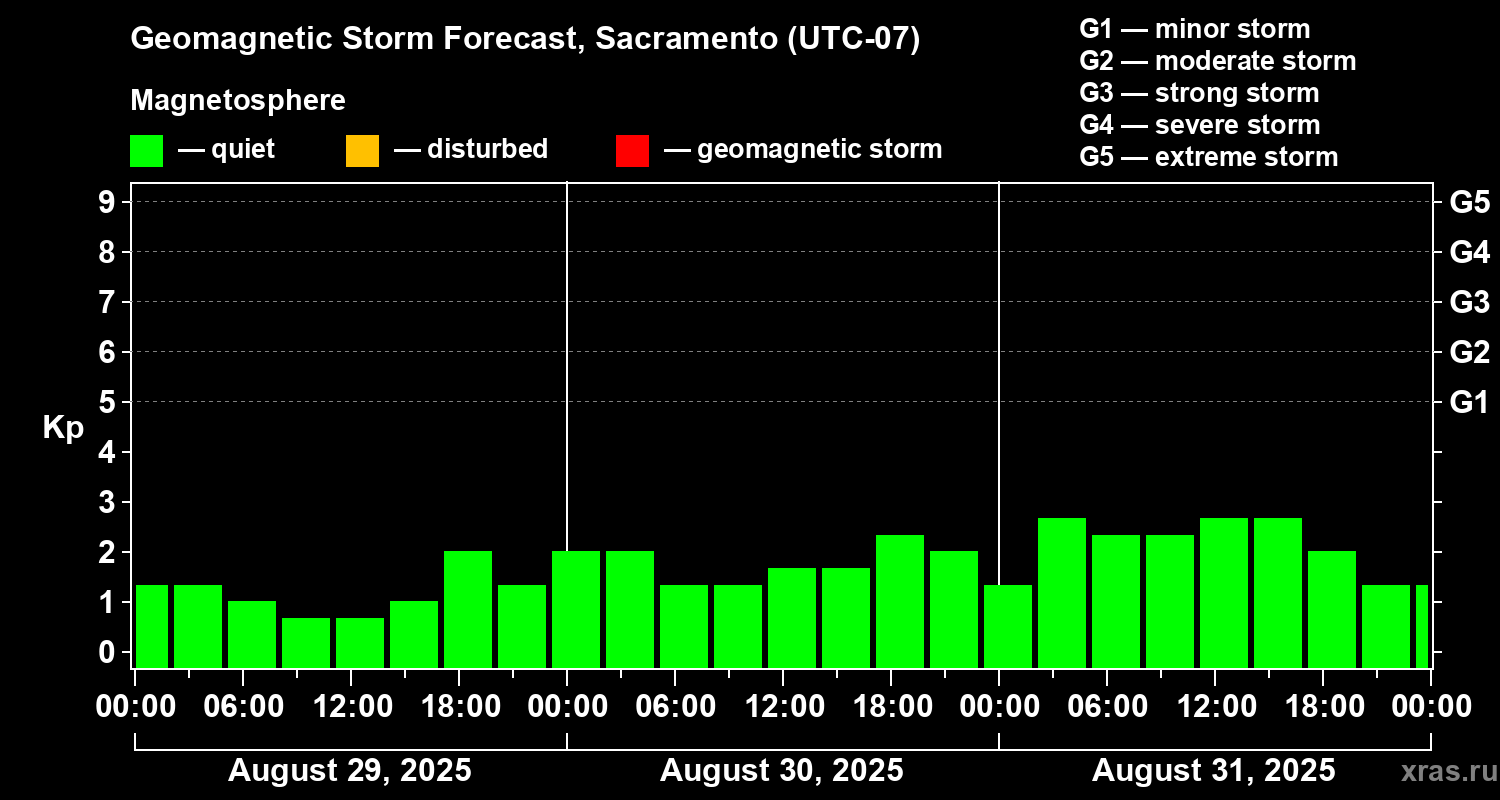 Geomagnetic storm forecast in Sacramento for Aug 29, 2025