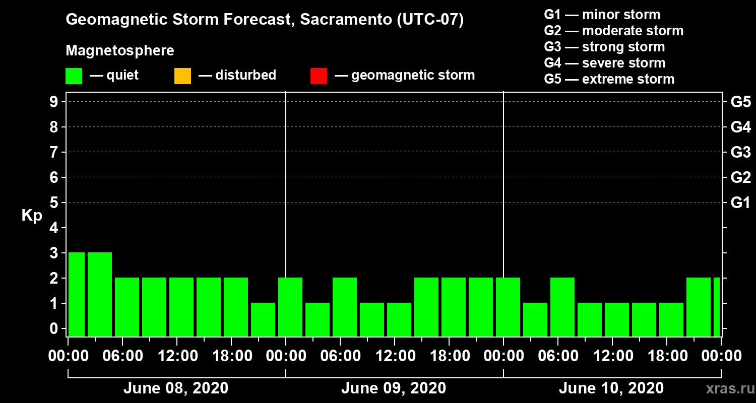 Geomagnetic storm forecast in Sacramento for Jun 08, 2020
