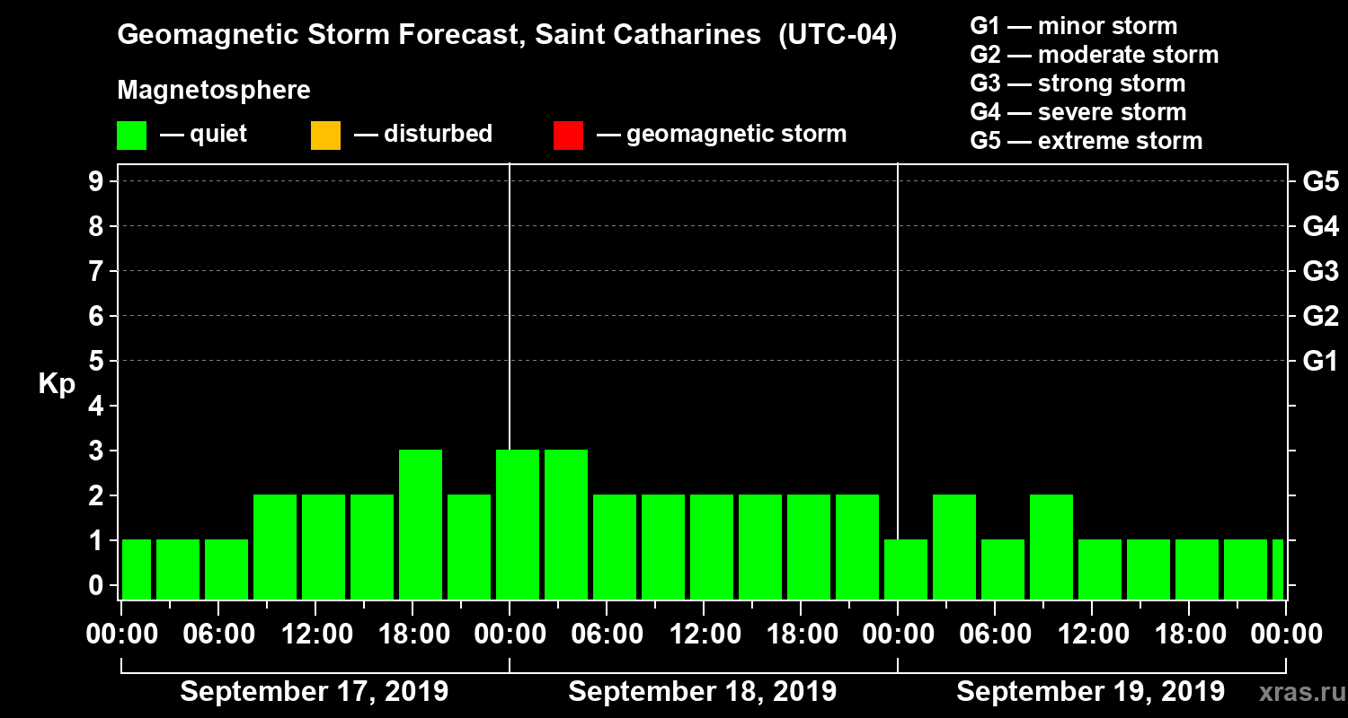 Geomagnetic storm forecast in Saint Catharines for Sep 17, 2019