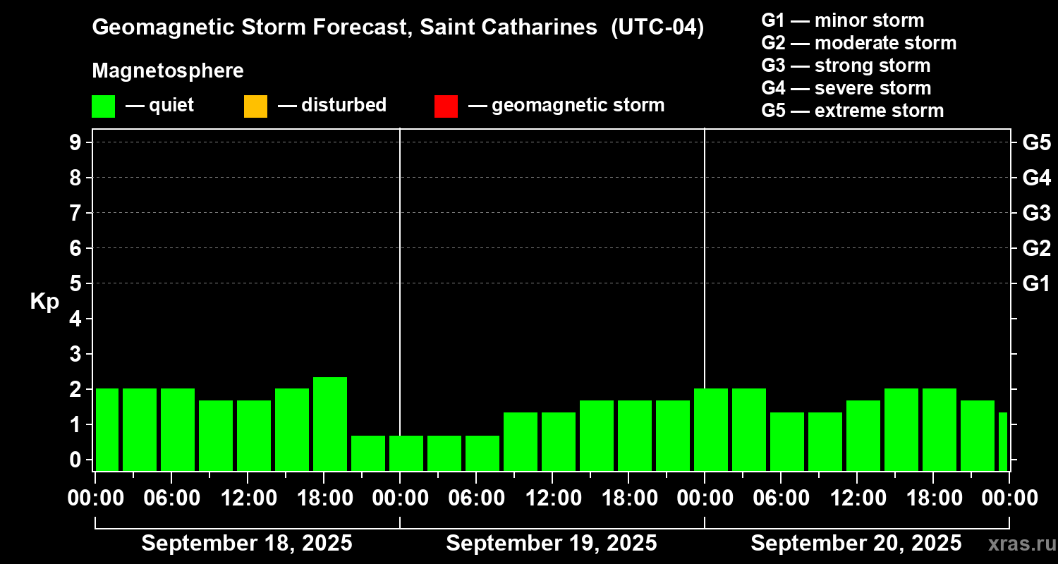 Geomagnetic storm forecast in Saint Catharines for Sep 18, 2025