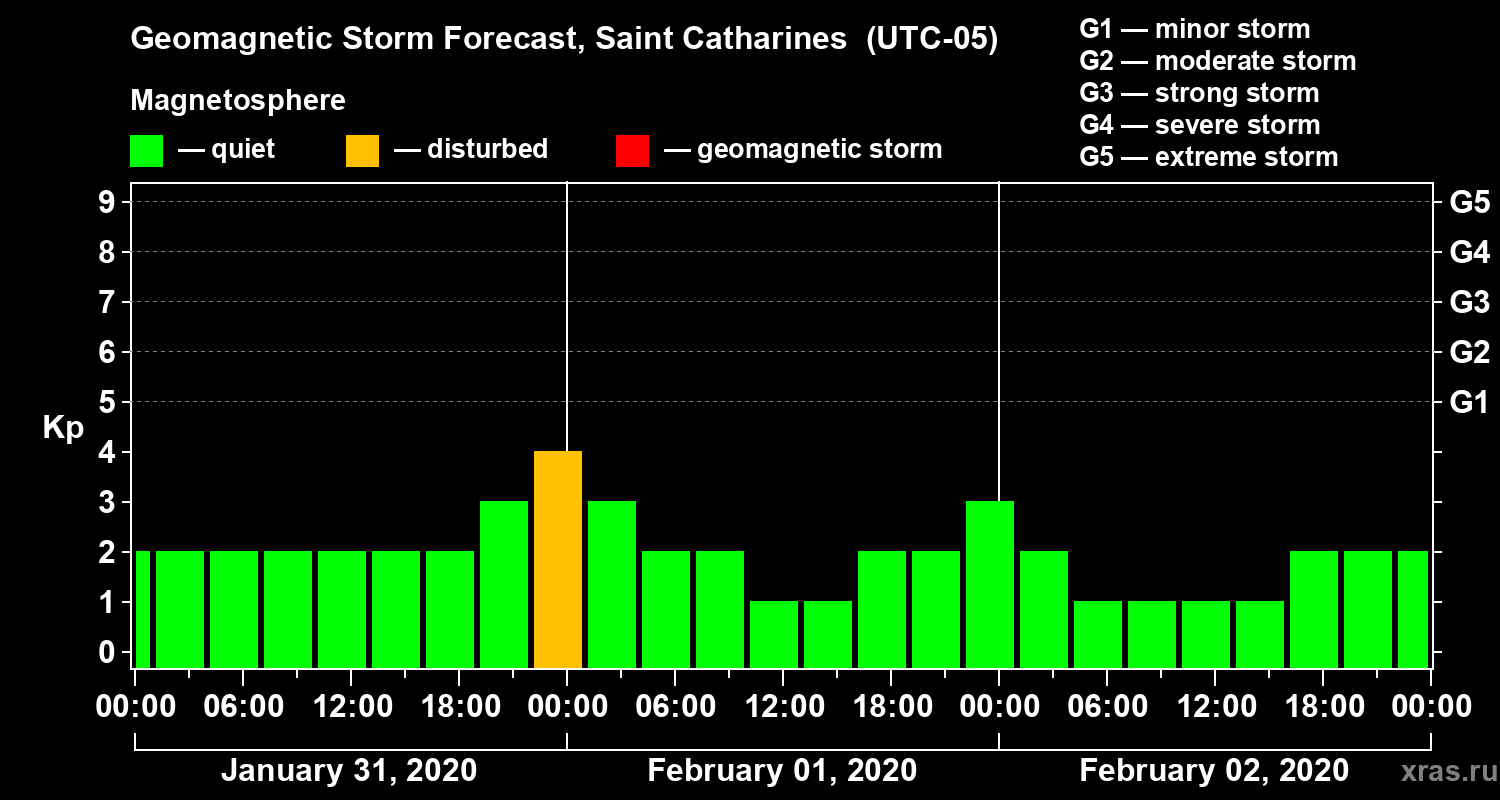 Geomagnetic storm forecast in Saint Catharines for Jan 31, 2020