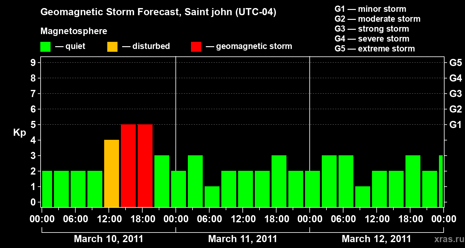 Geomagnetic storm forecast in Saint john for Mar 10, 2011