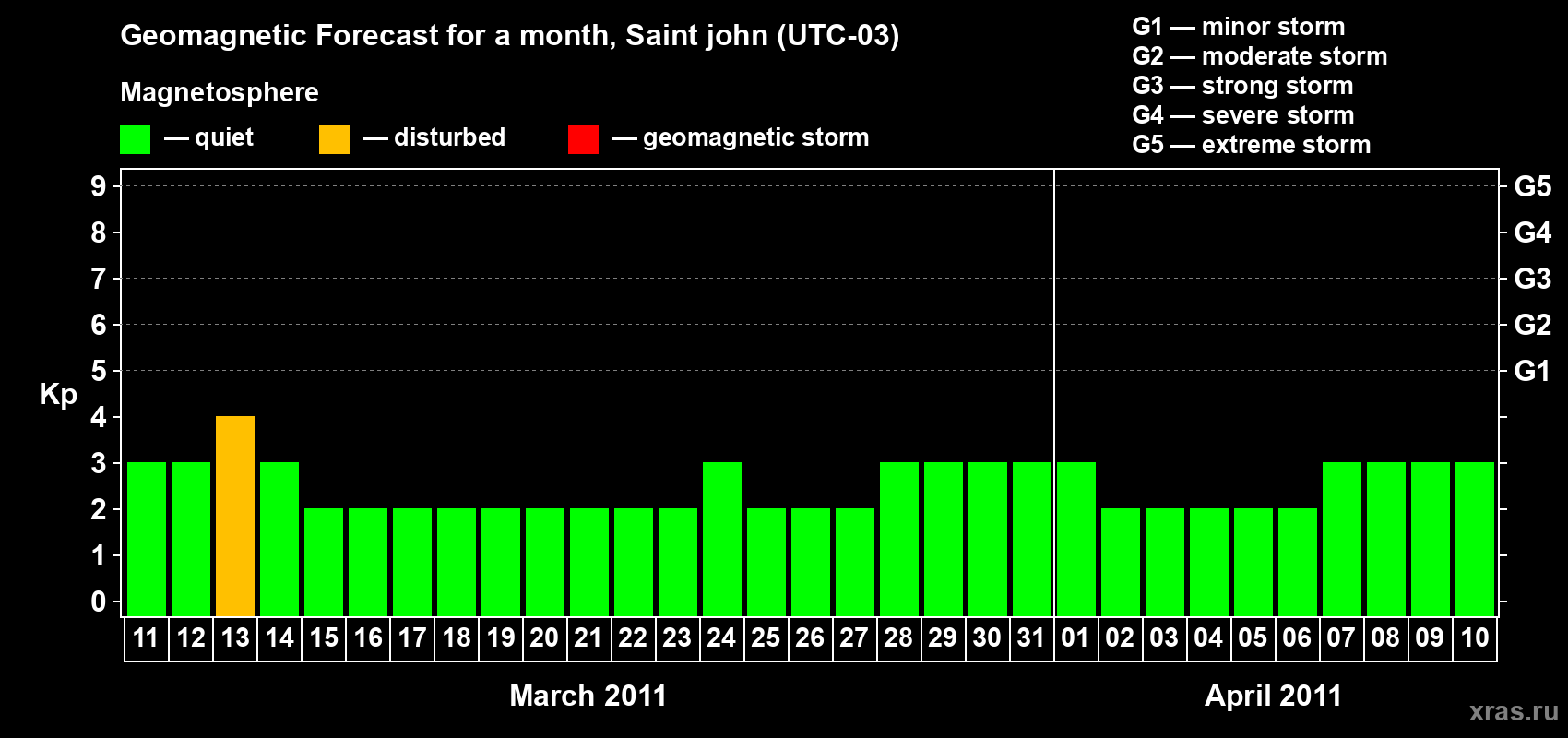 Geomagnetic storm forecast in Saint john for Mar 11, 2011