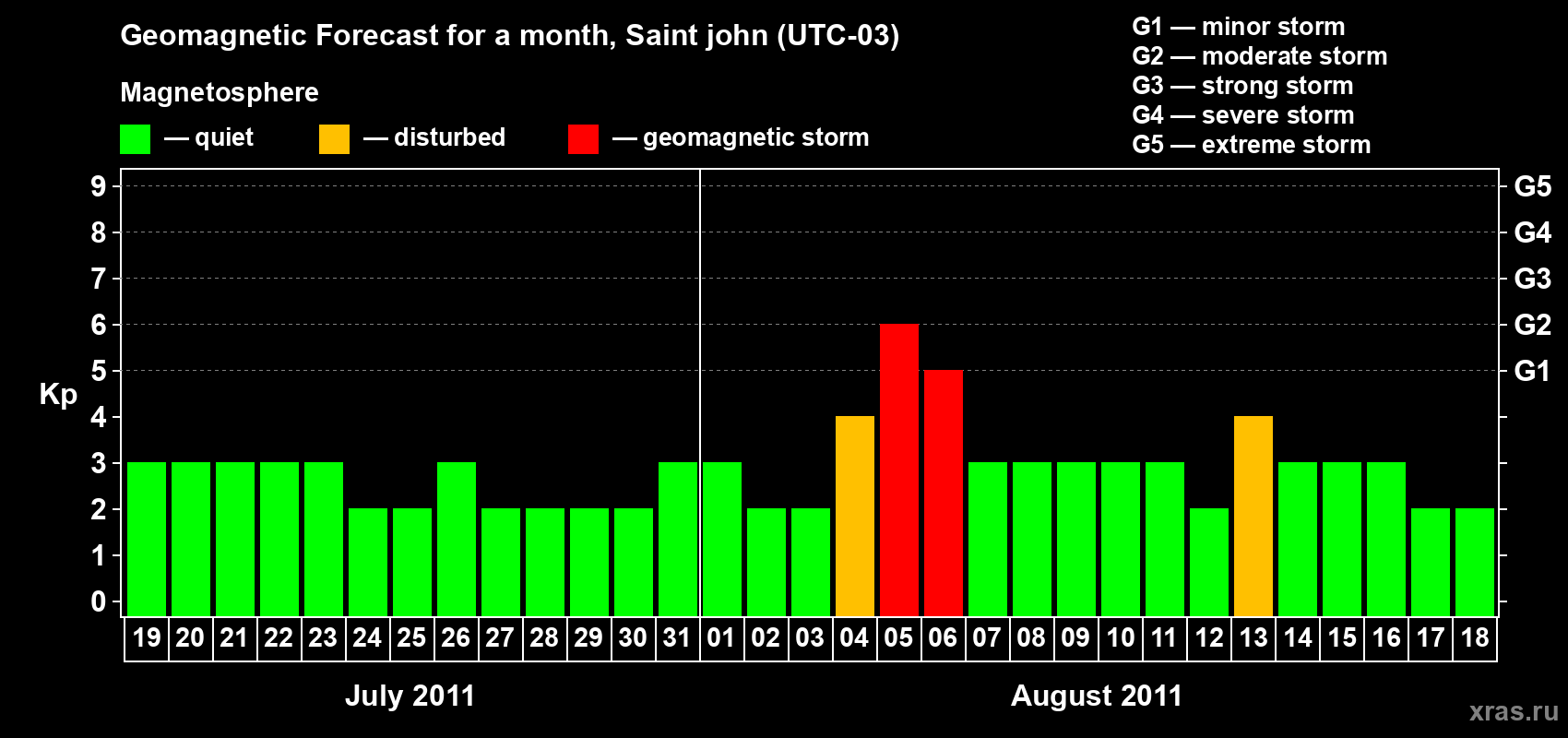 Geomagnetic storm forecast in Saint john for Jul 19, 2011