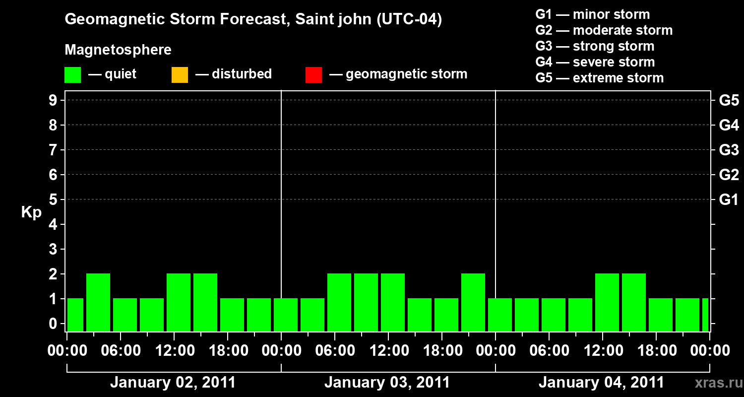 Geomagnetic storm forecast in Saint john for Jan 02, 2011