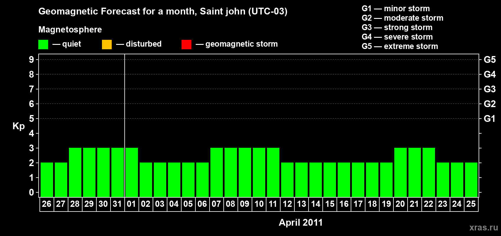 Geomagnetic storm forecast in Saint john for Mar 26, 2011