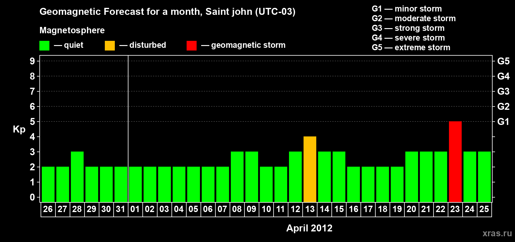 Geomagnetic storm forecast in Saint john for Mar 26, 2012